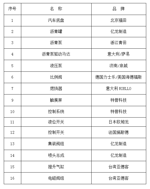 3、YLLS0945(國(guó)Ⅵ 標(biāo)配型)全自動(dòng)瀝青灑布車(chē)主要元器件配置